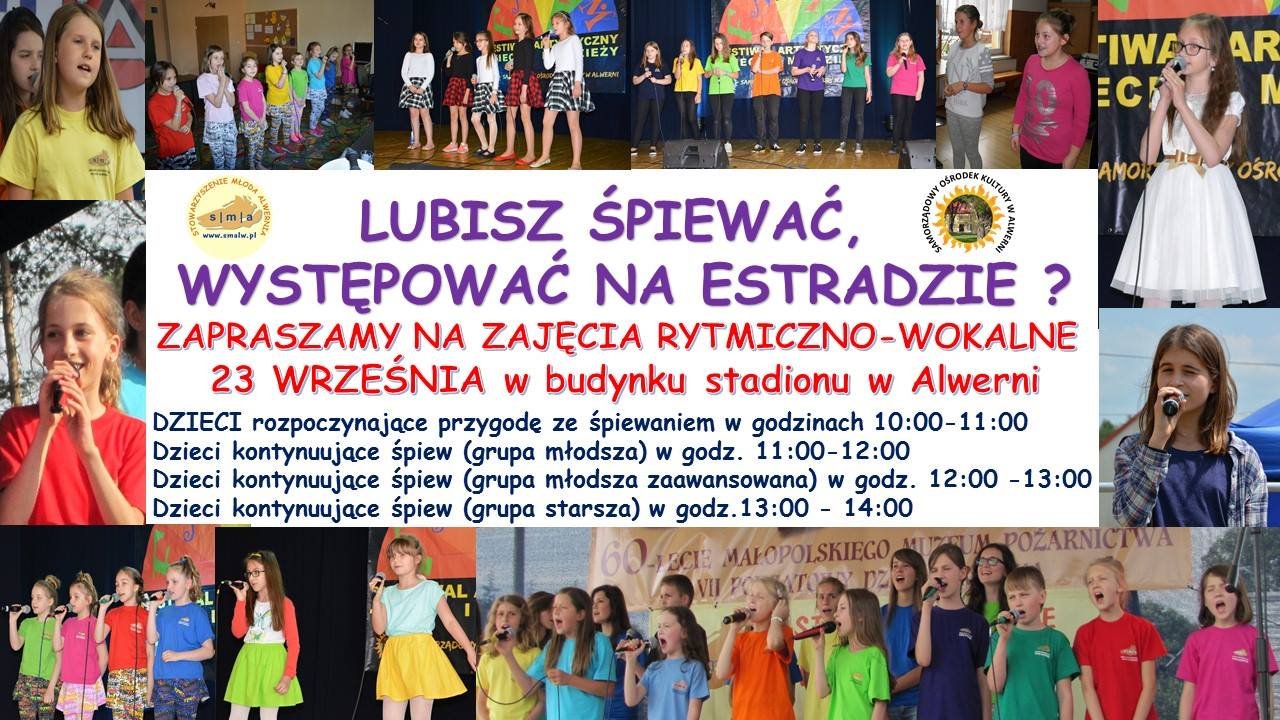 ZAJĘCIA SOBOTNIE! 22 września, 2017 0 0 Aktualności W najbliższą sobotę 23 września zapraszamy wszystkie chętne dzieci w wieku szkolnym lub starsze na zajęcia plastyczne oraz muzyczne. Share